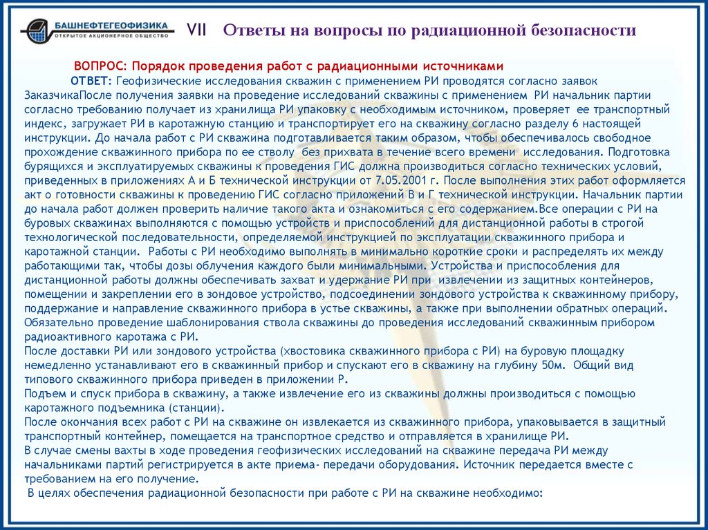 по проведению ГИРС приборами на кабеле в нефтяных и газовых