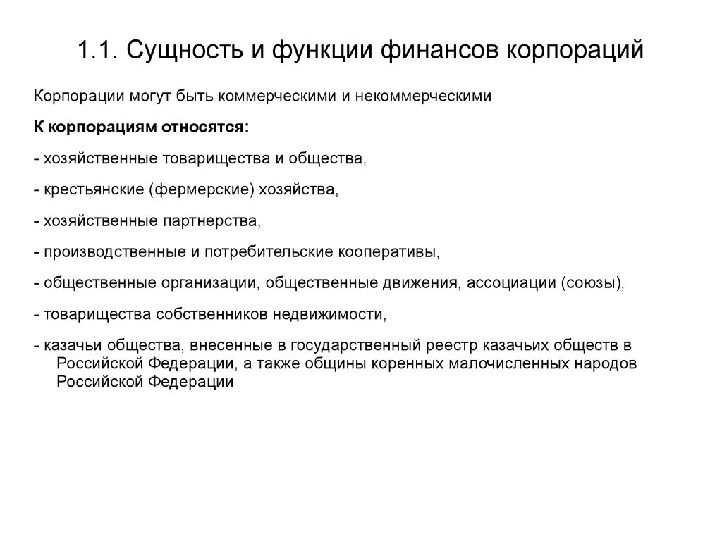 1.1. Сущность и функции финансов корпорацийКорпорации могут быть коммерческими и некоммерческими