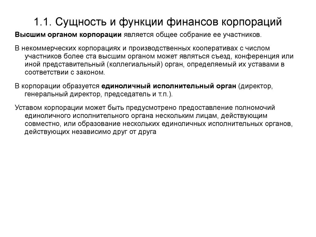 1.1. Сущность и функции финансов корпорацийВысшим органом корпорации является общее собрание ее участников.