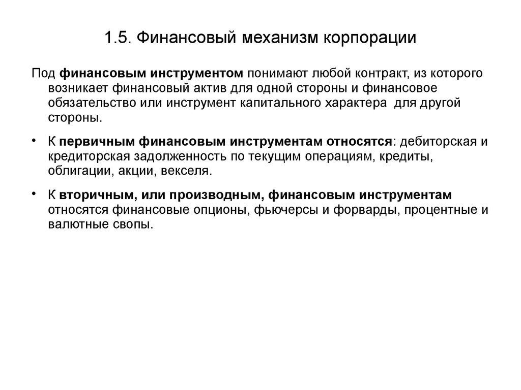 1.5. Финансовый механизм корпорацииПод финансовым инструментом понимают любой контракт, из которого