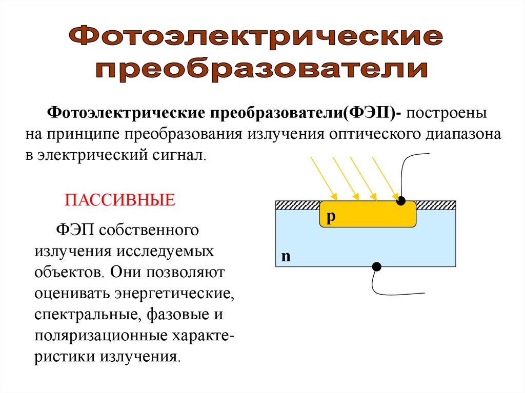Фотоэлектрические преобразователи(ФЭП)- построенына принципе преобразования излучения оптического диапазона