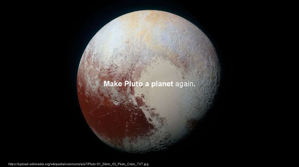 Make Pluto a planet again.https://upload.wikimedia.org/wikipedia/commons/a/a7/Pluto-01_Stern_03_Pluto_Color_TXT.jpg