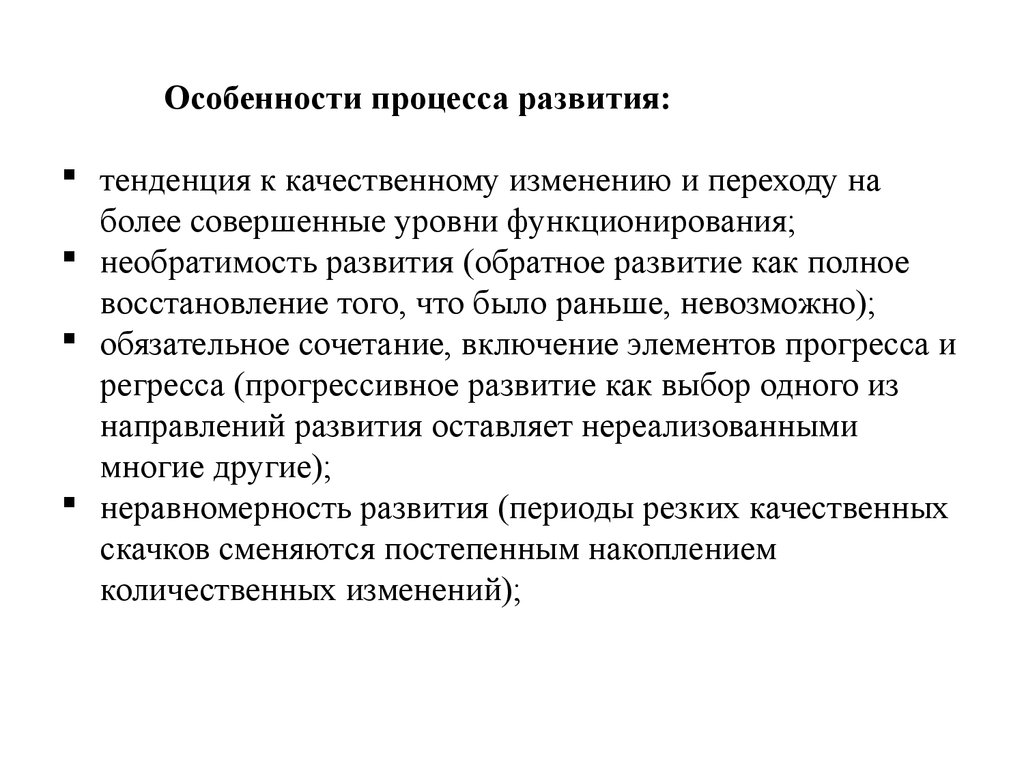 Особенности процесса развития:тенденция к качественному изменению и переходу на