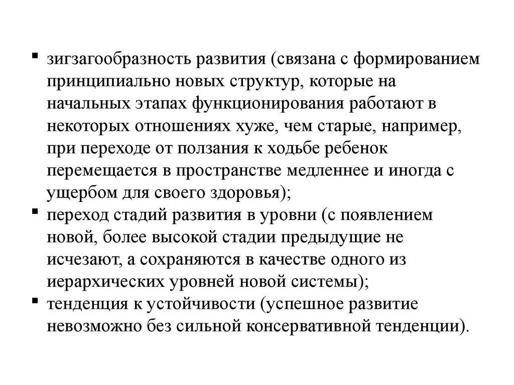 зигзагообразность развития (связана с формированиемпринципиально новых структур, которые на