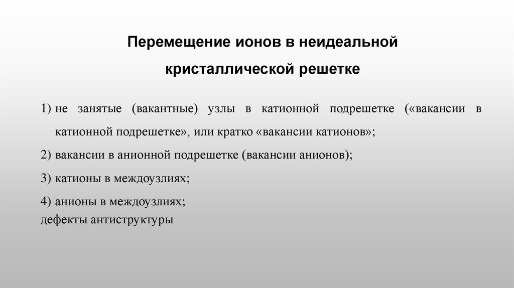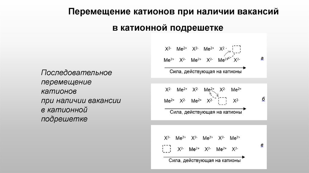 Перемещение катионов при наличии вакансийв катионной подрешетке
