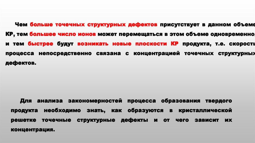 Чем больше точечных структурных дефектов присутствует в данном объемеКР, тем большее число ионов может перемещаться в этом объеме одновременно,