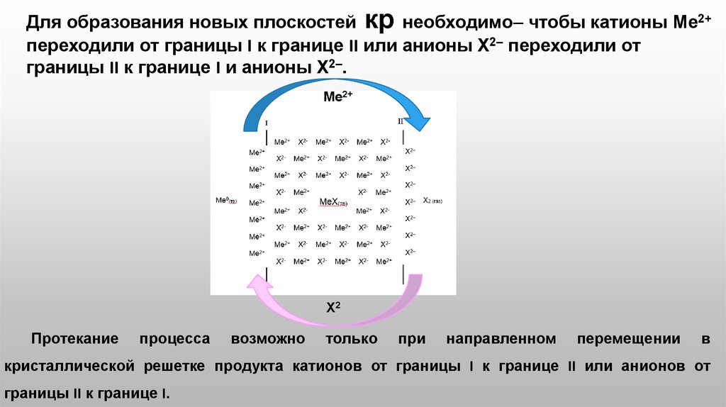 Для образования новых плоскостей кр необходимо– чтобы катионы Ме2+переходили от границы I к границе II или анионы Х2– переходили от