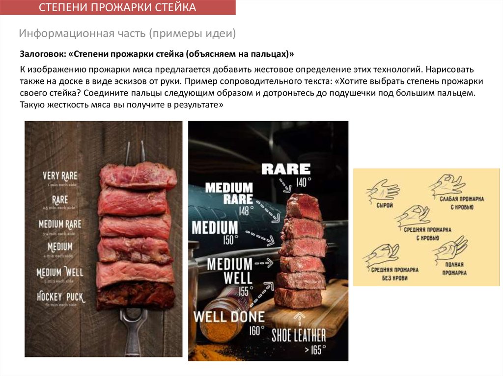 СТЕПЕНИ ПРОЖАРКИ СТЕЙКАИнформационная часть (примеры идеи)