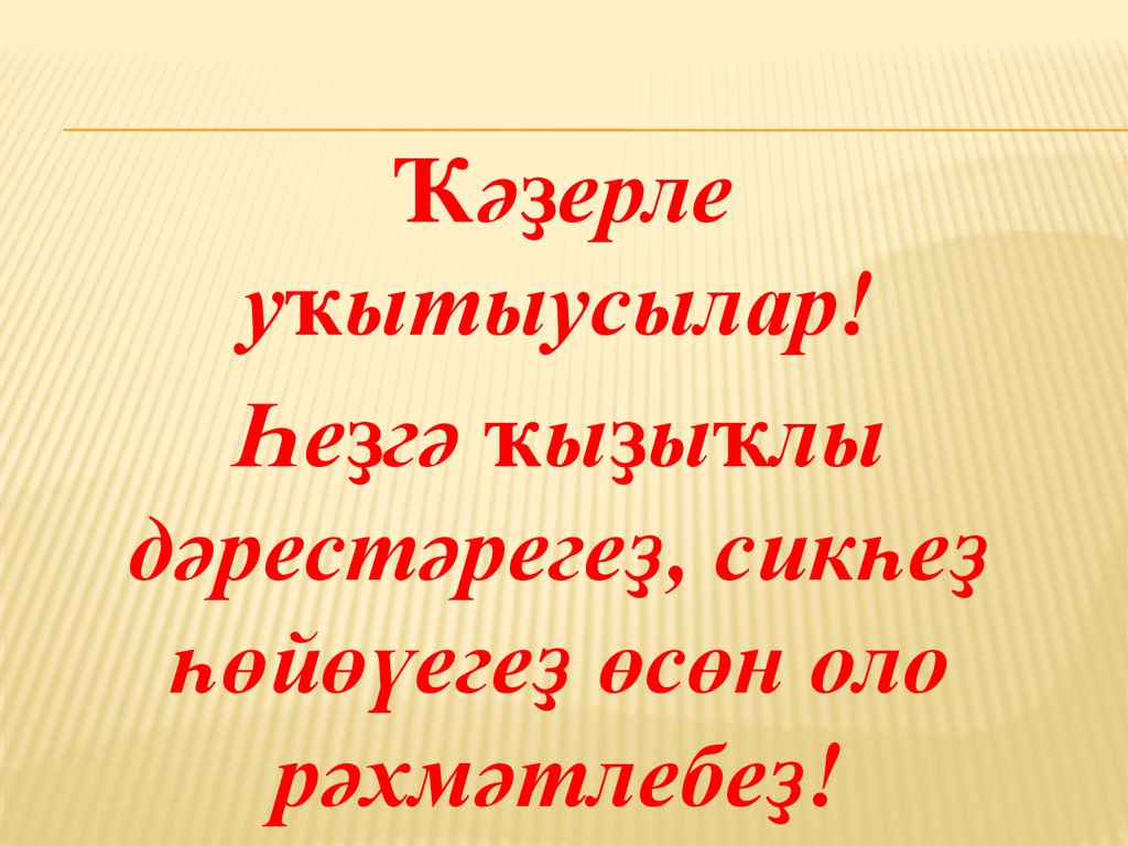3. УҠЫТЫУСЫ ! Ниндәй бөйөк исем ! Кешелеккә белем биреусе! Һәр көн һайын беҙҙең йөрәктәргә Изгелек нурҙарын һибеүсе!