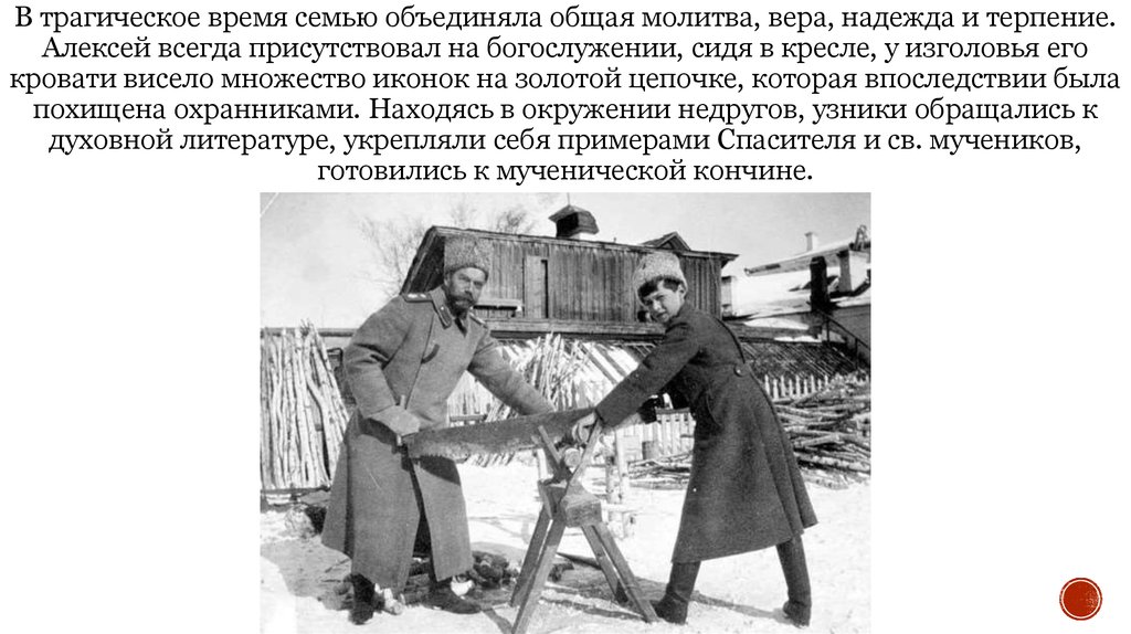 В трагическое время семью объединяла общая молитва, вера, надежда и терпение.Алексей всегда присутствовал на богослужении, сидя в кресле, у изголовья его