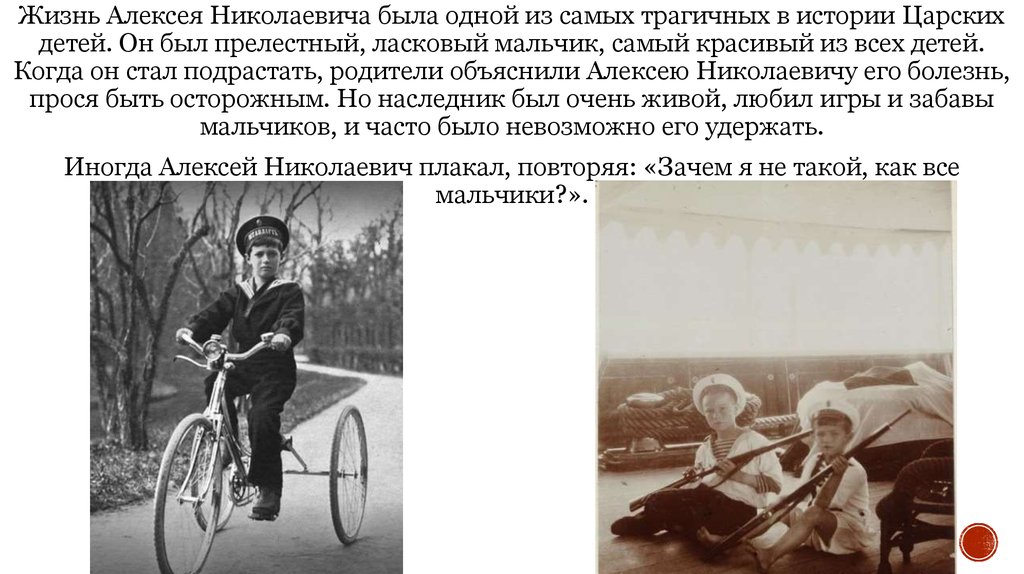 Когда он стал подрастать, родители объяснили Алексею Николаевичу его болезнь,