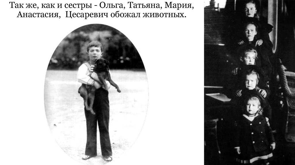 Так же, как и сестры - Ольга, Татьяна, Мария,Анастасия, Цесаревич обожал животных.
