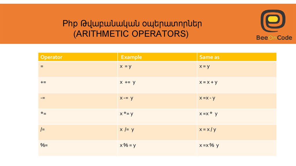3. Php Թվաբանական օպերատորներ (ARITHMETIC OPERATORS)