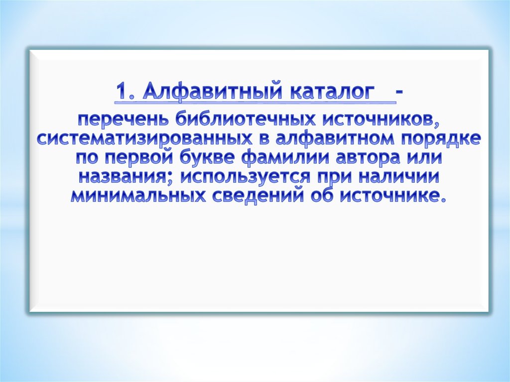 Виды каталоговАлфавитный