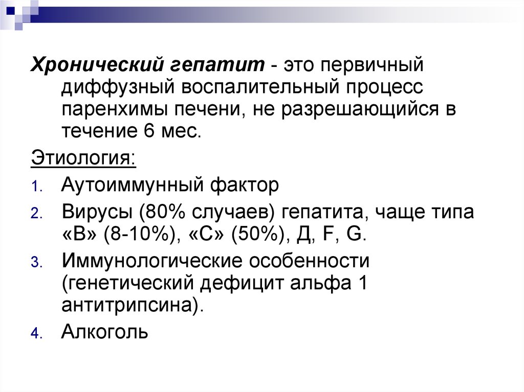 Хронический гепатит - это первичныйдиффузный воспалительный процесс