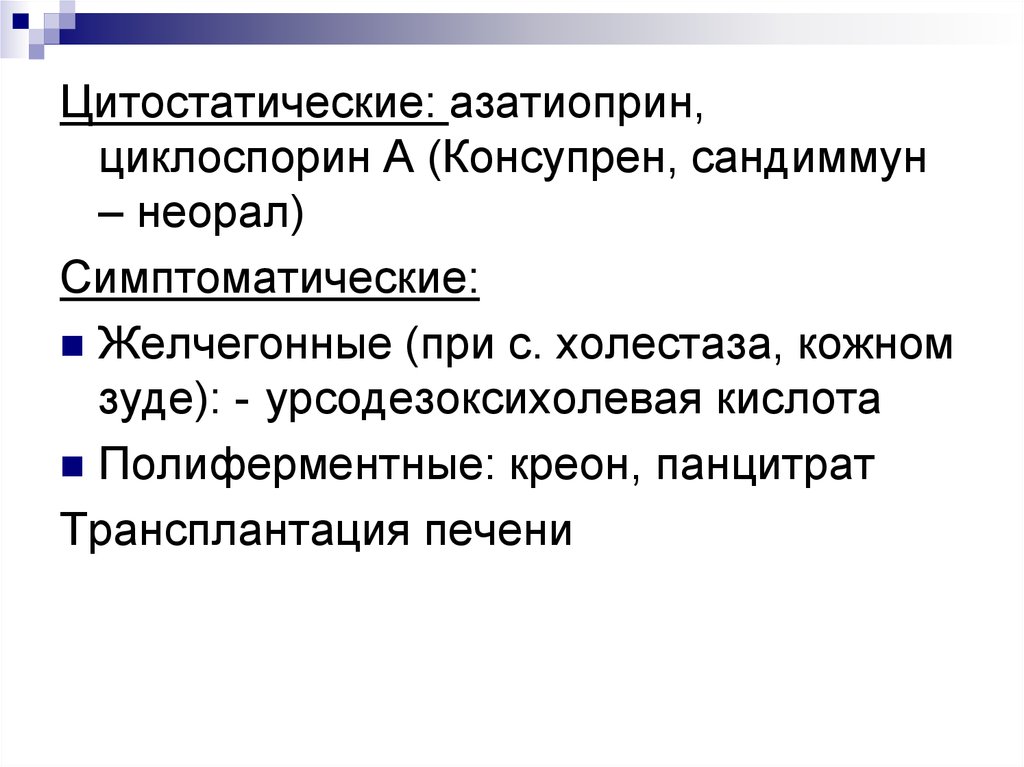 Цитостатические: азатиоприн,циклоспорин А (Консупрен, сандиммун