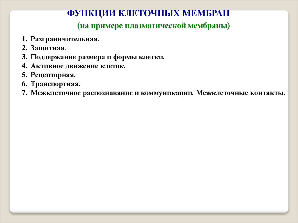ФУНКЦИИ КЛЕТОЧНЫХ МЕМБРАН(на примере плазматической мембраны)
