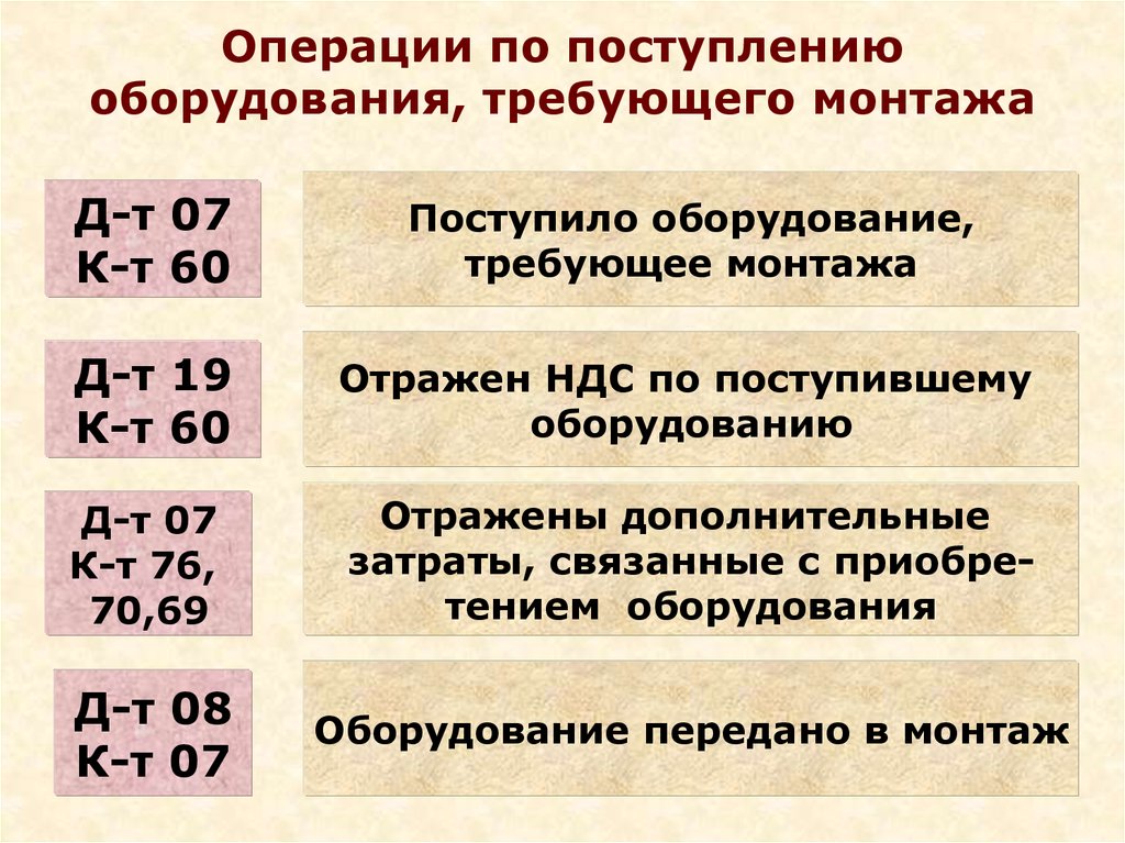 Операции по поступлениюоборудования, требующего монтажа