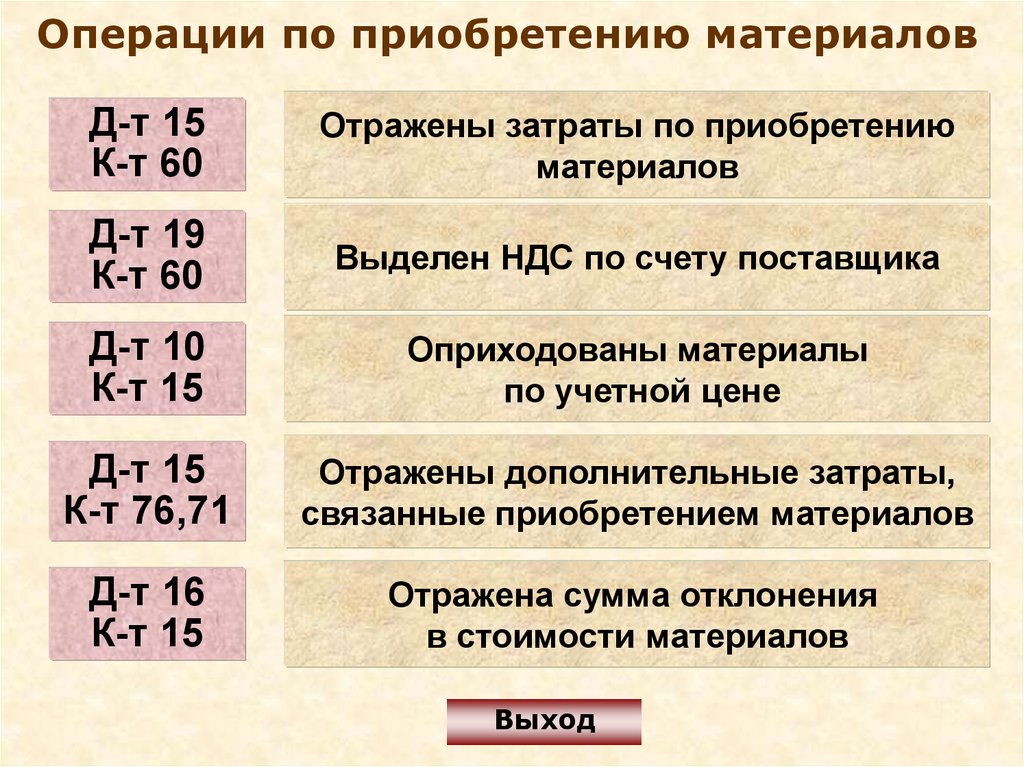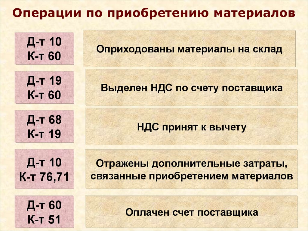 Операции по приобретению материаловД-т 10