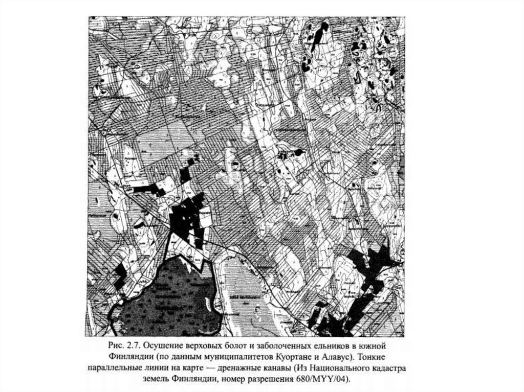 сукцессии (заштрихованные участки), как стабильные сети и полосы сырых лесов,