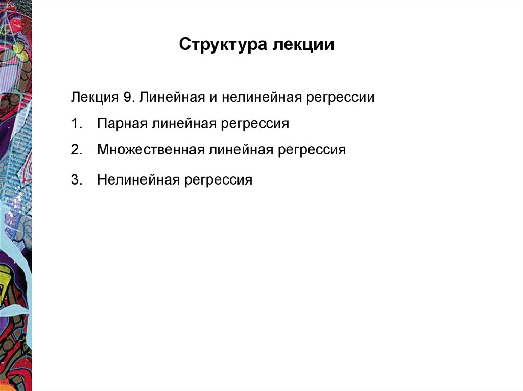 Структура лекцииЛекция 9. Линейная и нелинейная регрессии