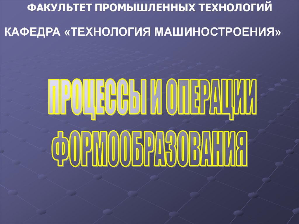 ФАКУЛЬТЕТ ПРОМЫШЛЕННЫХ ТЕХНОЛОГИЙКАФЕДРА «ТЕХНОЛОГИЯ МАШИНОСТРОЕНИЯ»