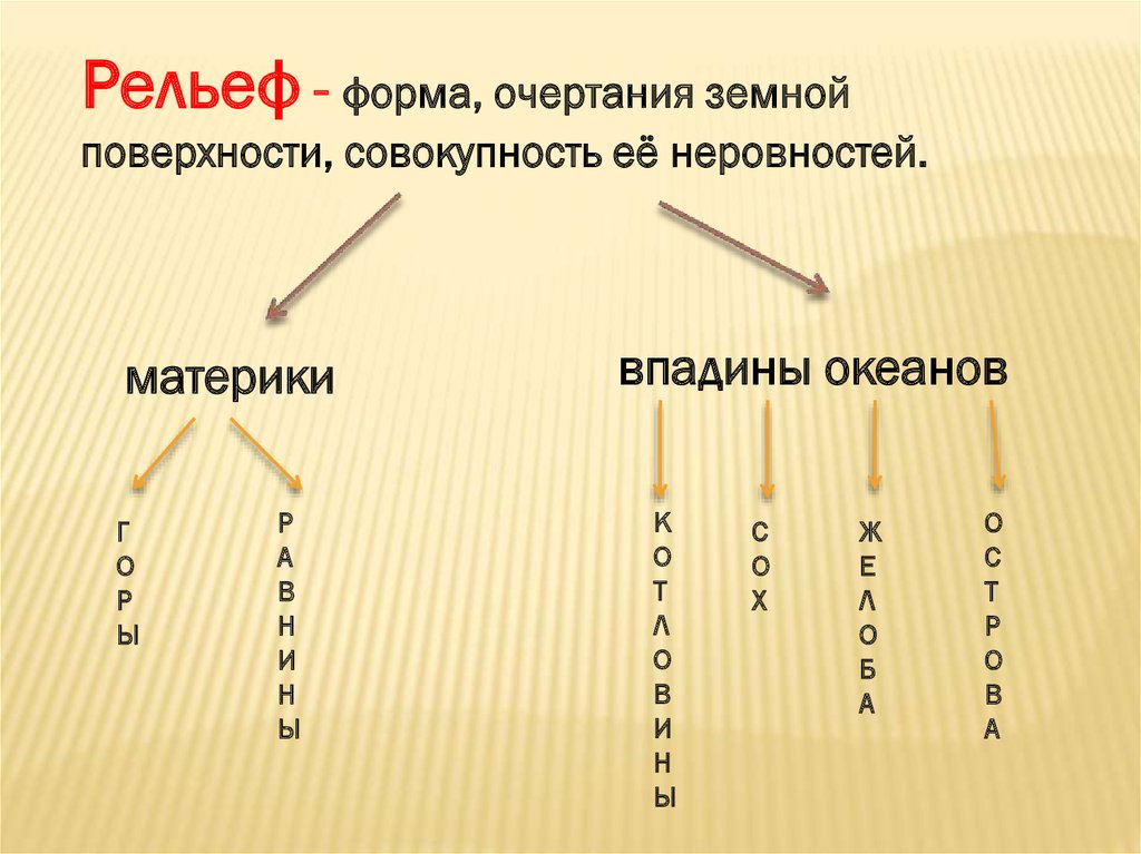 Рельеф - форма, очертания земнойповерхности, совокупность её неровностей.