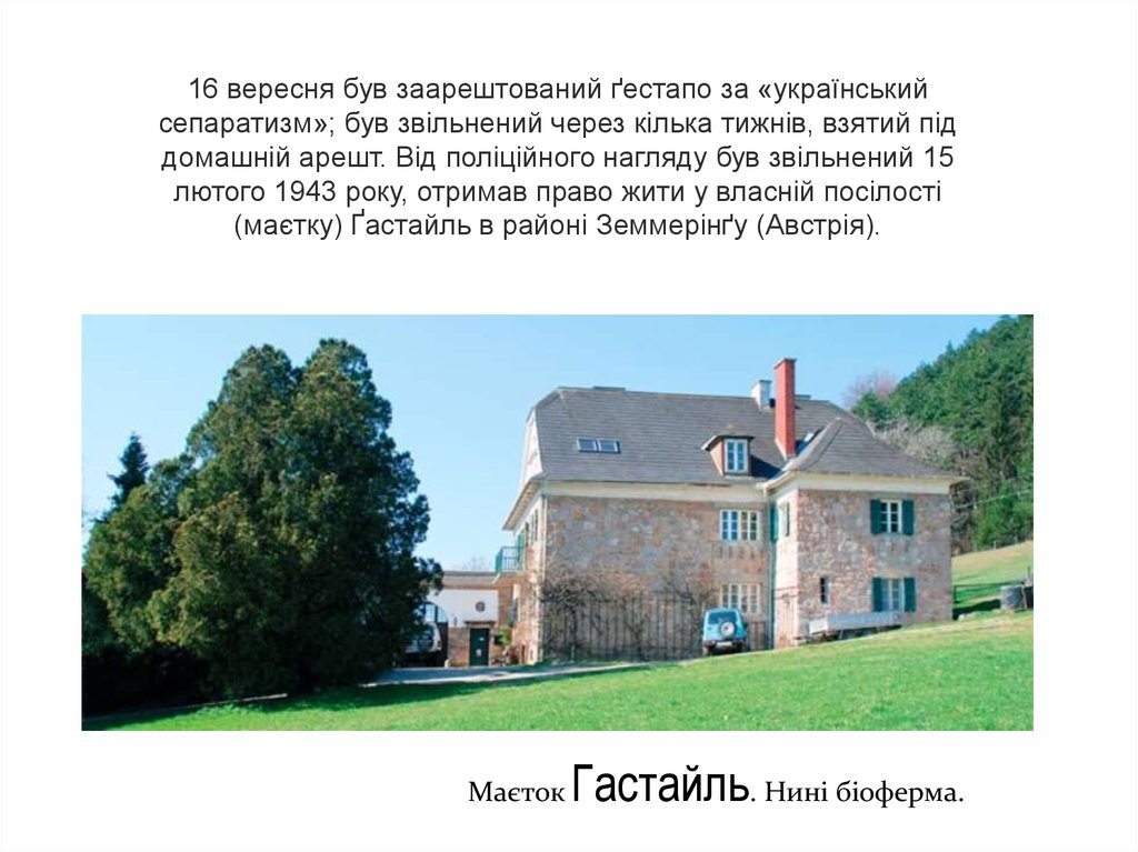 16 вересня був заарештований ґестапо за «українськийсепаратизм»; був звільнений через кілька тижнів, взятий під