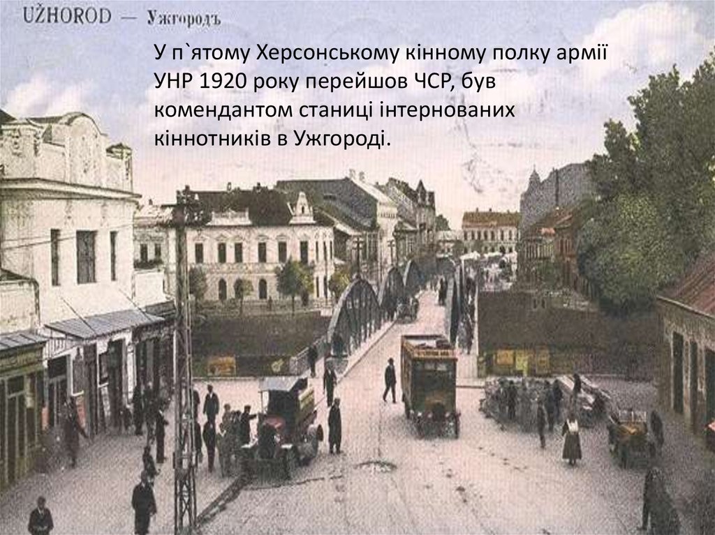 У п`ятому Херсонському кінному полку арміїУНР 1920 року перейшов ЧСР, був