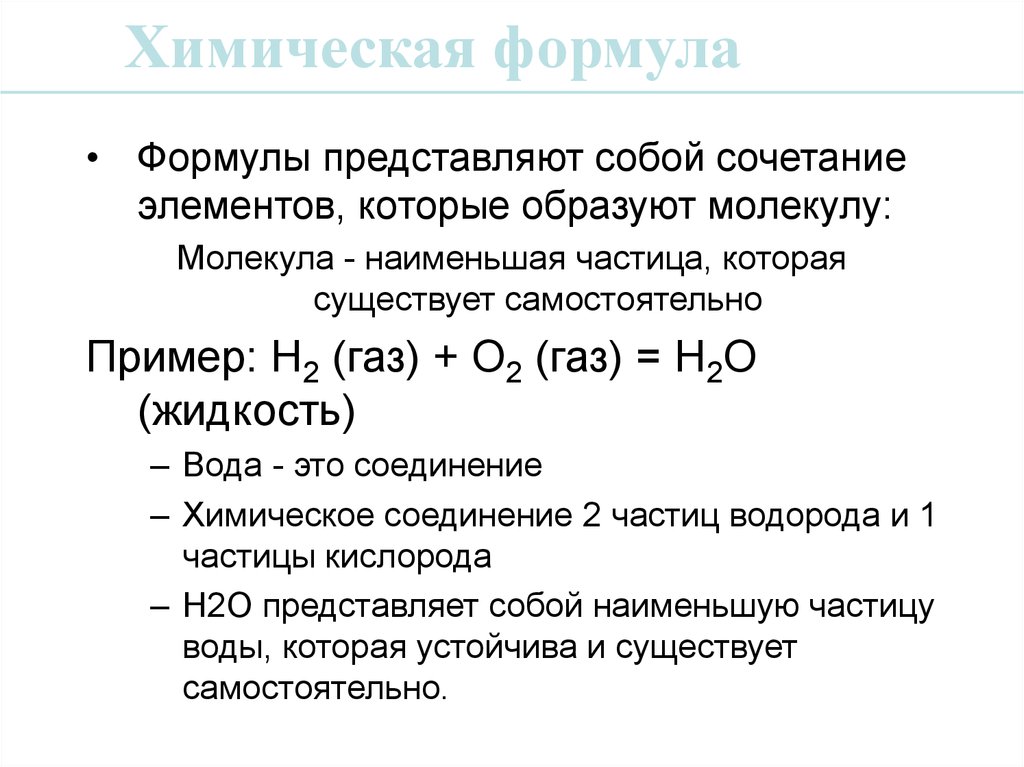 – Химическое соединение 2 частиц водорода и 1