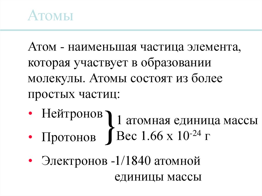 АтомыАтом - наименьшая частица элемента,