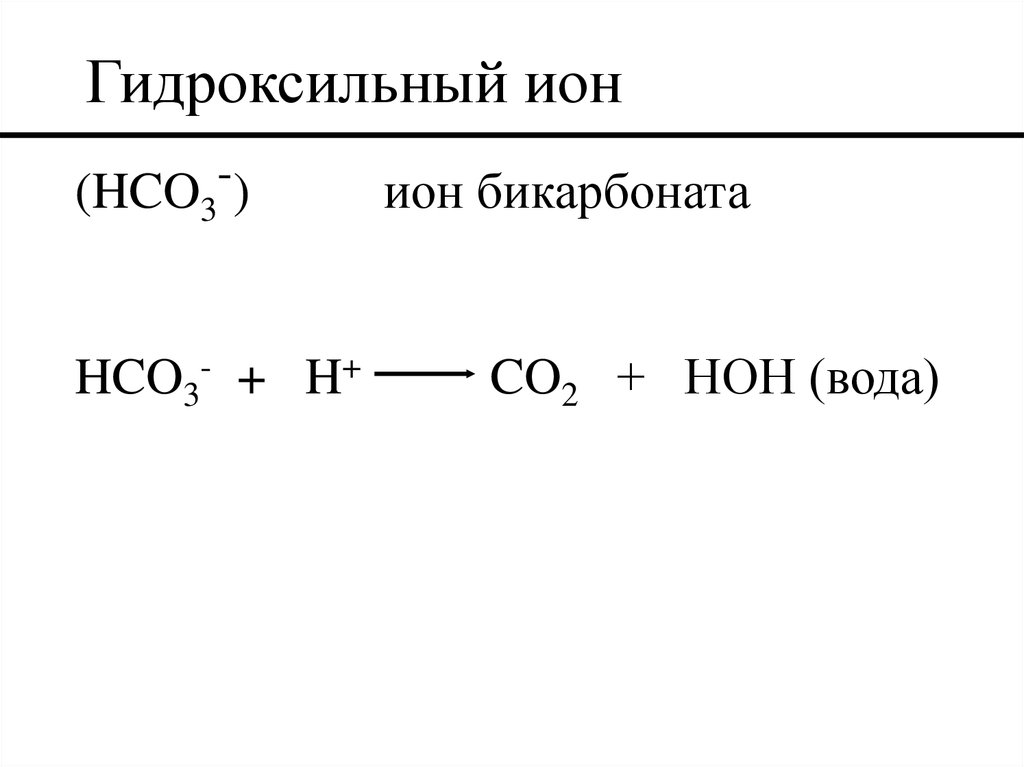 Уровень pH щелочного иона• 6.3 < pH < 10.3 HCO3 ион бикарбоната