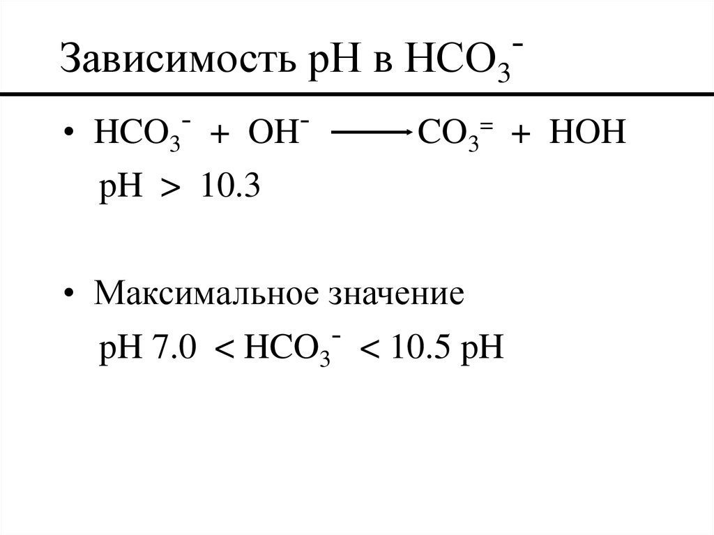 Зависимость pH в HCO3• HCO3 + OH