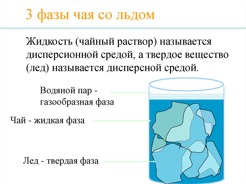 3 фазы чая со льдомЖидкость (чайный раствор) называется