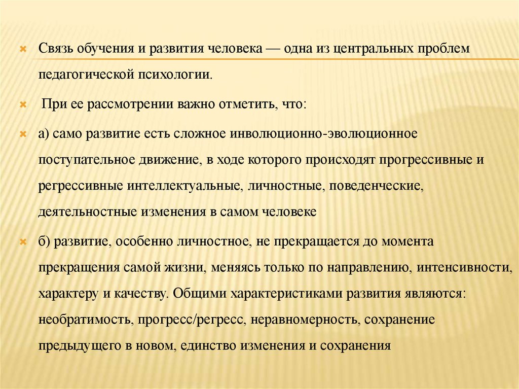 Связь обучения и развития человека — одна из центральных проблемпедагогической психологии.