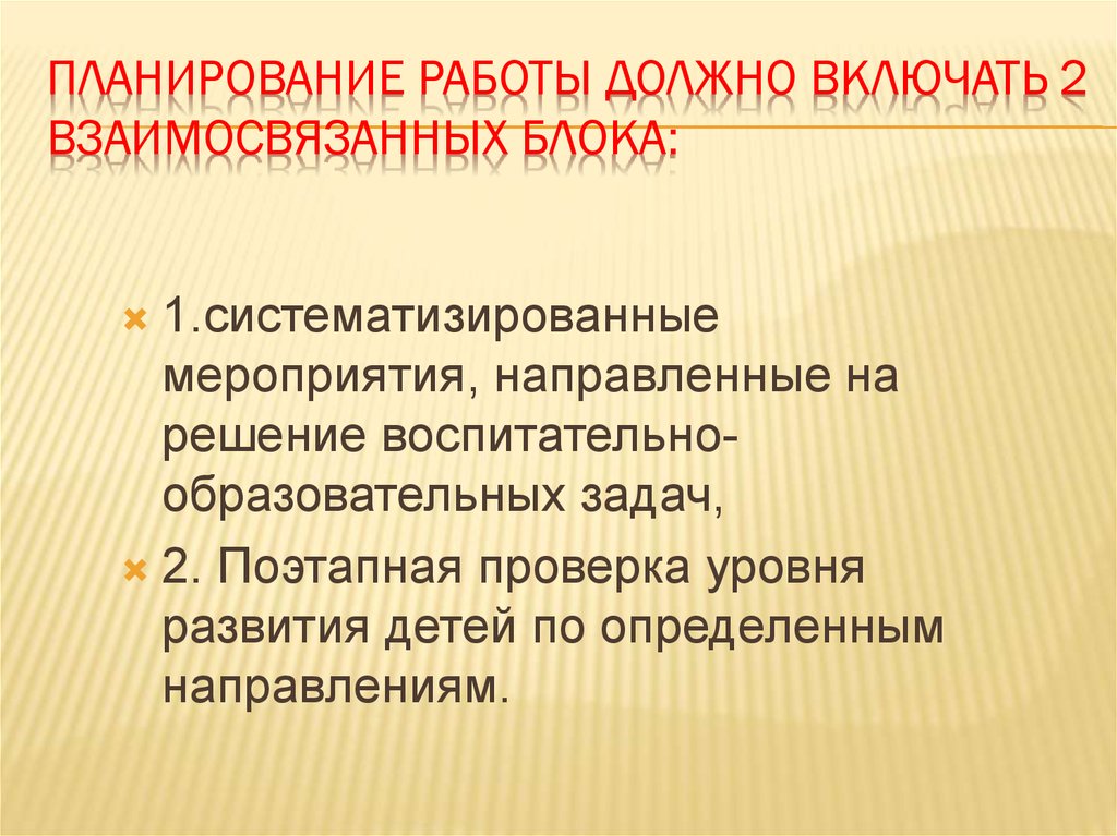ПЛАНИРОВАНИЕ РАБОТЫ ДОЛЖНО ВКЛЮЧАТЬ 2ВЗАИМОСВЯЗАННЫХ БЛОКА: