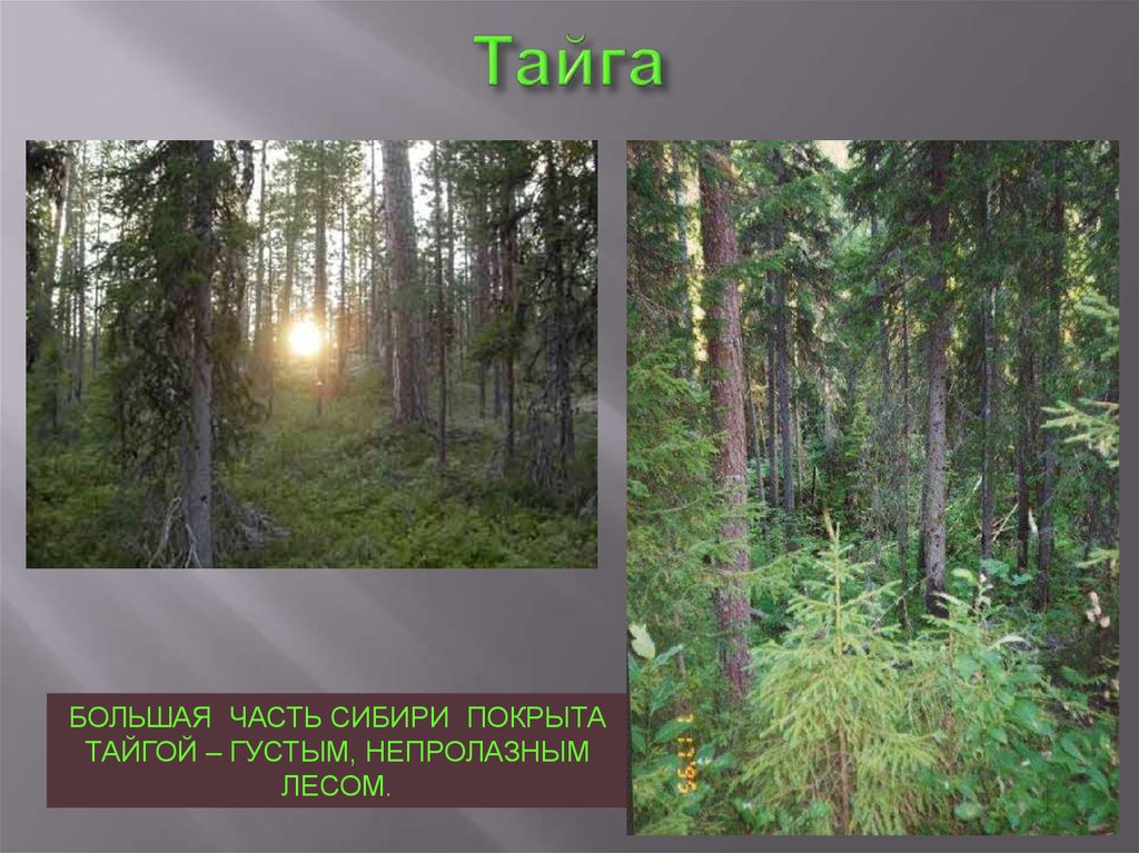 БОЛЬШАЯ ЧАСТЬ СИБИРИ ПОКРЫТАТАЙГОЙ – ГУСТЫМ, НЕПРОЛАЗНЫМ