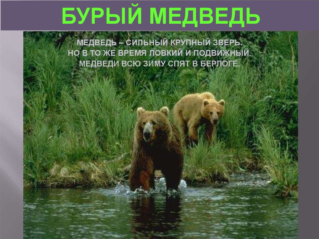 БУРЫЙ МЕДВЕДЬМЕДВЕДЬ – СИЛЬНЫЙ КРУПНЫЙ ЗВЕРЬ.