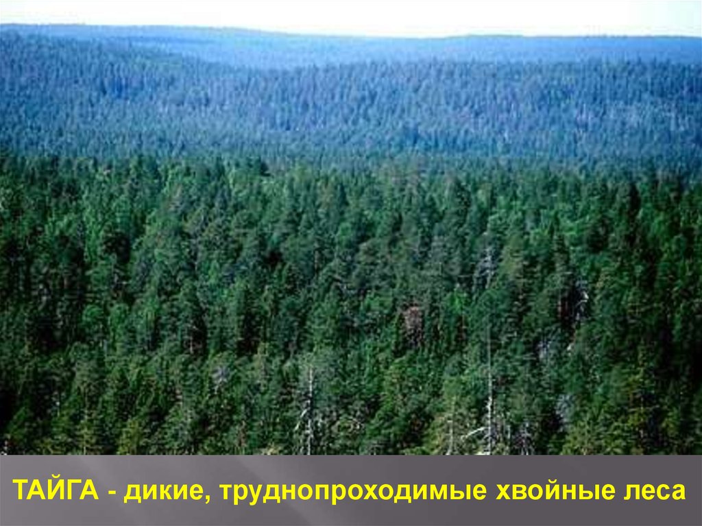 ТАЙГА - дикие, труднопроходимые хвойные леса4.