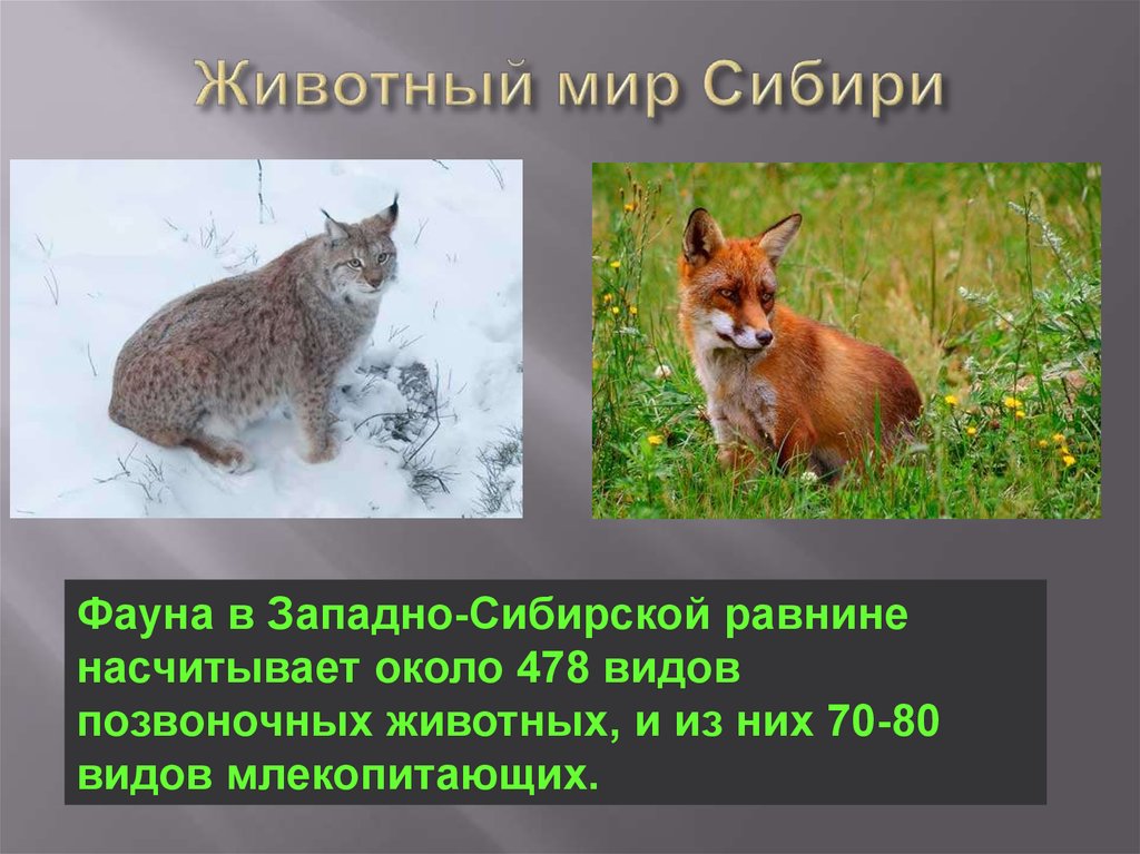 Фауна в Западно-Сибирской равниненасчитывает около 478 видов