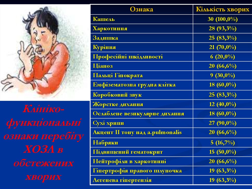 Проаналізувати клініко-функціональні особливостіперебігу ХОЗЛ.