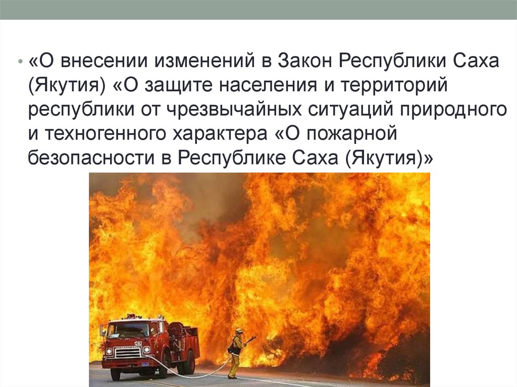 • «О внесении изменений в Закон Республики Саха(Якутия) «О защите населения и территорий