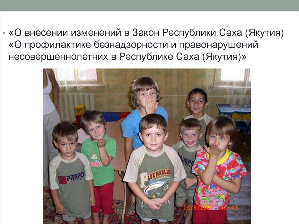 • «О внесении изменений в Закон Республики Саха (Якутия)«О профилактике безнадзорности и правонарушений