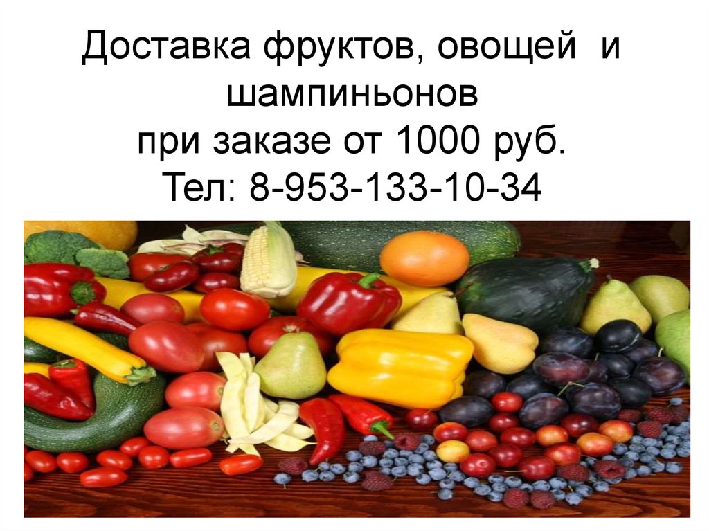 1. Доставка фруктов, овощей и шампиньонов при заказе от 1000 руб. Тел: 8-953-133-10-34