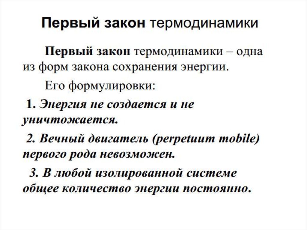 • Если система совершает работу без дополнительногосообщения энергии, то работа совершается за счет