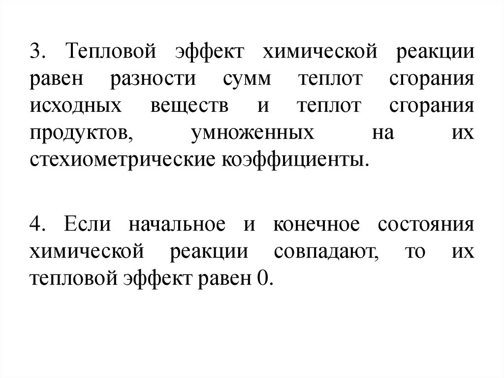 3. Тепловой эффект химической реакцииравен разности сумм теплот сгорания