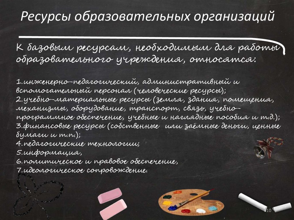 Ресурсы образовательных организацийК базовым ресурсам, необходимым для работы