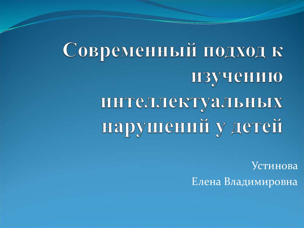 1. Современный подход к изучению интеллектуальных нарушений у детей