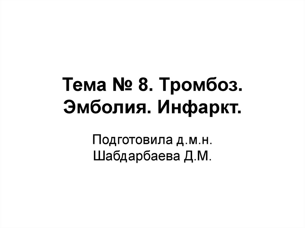 Тема № 8. Тромбоз. Эмболия. Инфаркт.