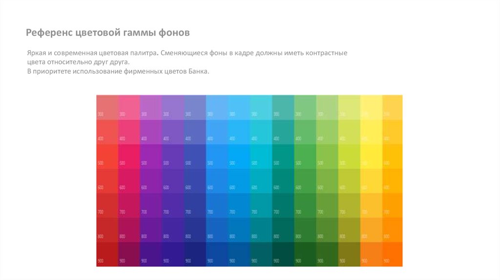 Референс цветовой гаммы фоновЯркая и современная цветовая палитра. Сменяющиеся фоны в кадре должны иметь контрастные